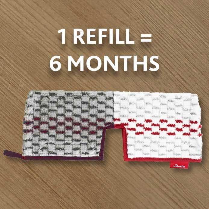 The mop pad can be washed in the washing machine at up to 60° C and reused time and time again. For effective cleaning power, we recommend that you replace the refill every 6 months.
