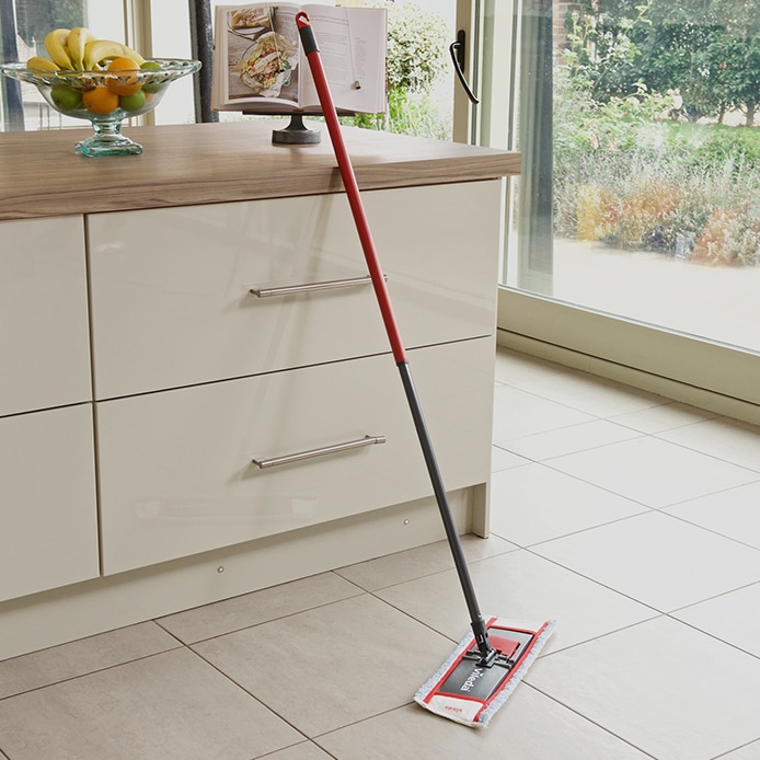 The mop removes stubborn dirt and other marks on your floor with the help of its blue & white looped fibres. These are designed to enhance the mop’s ability to collect fine dust