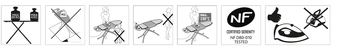 - Safety TÜV GS certified: collapsible ironing board equipped with a child safety system
