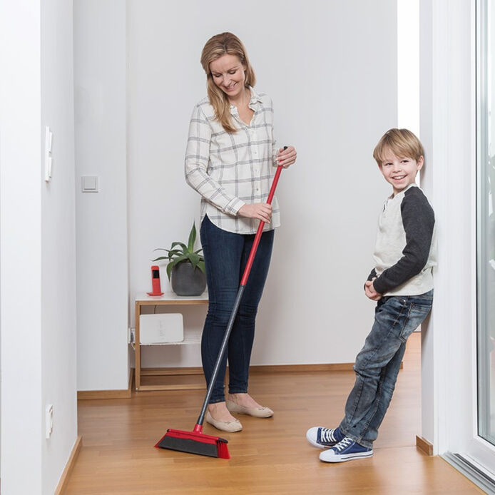 The Duactiva anti dust broom combines a soft foam layer with firm, synthetic bristles to collect all dirt in one sweep for a satisfyingly thorough cleaning result.