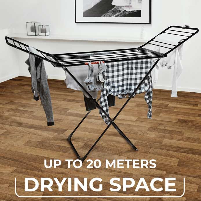 Not only does this indoor airer excel in functionality, but it also adds a touch of elegance to your home. The stylish matt black colour any interior style, enhancing the aesthetics of your living space. Its sleek and modern appearance makes it a perfect addition to any home decor.