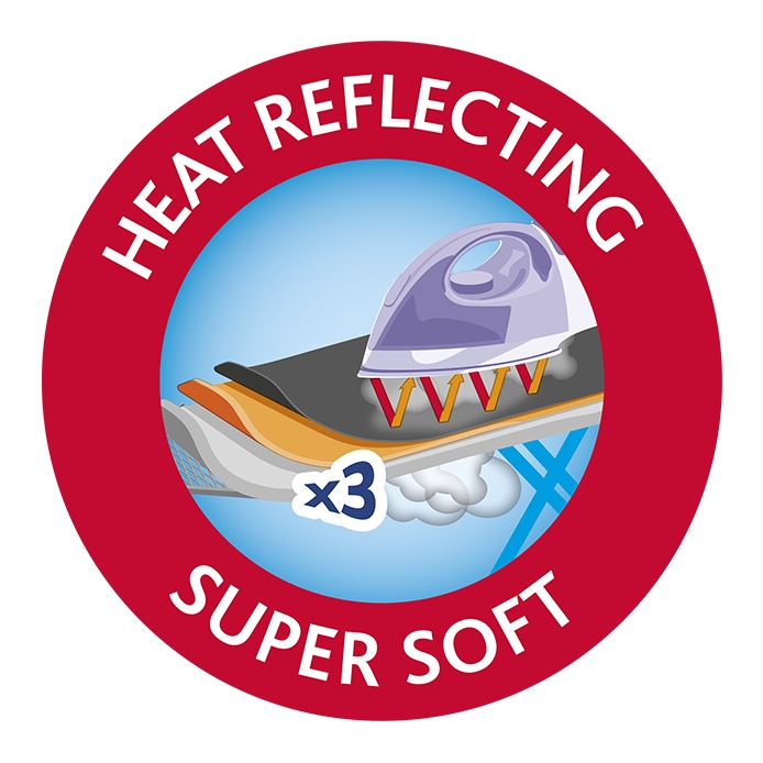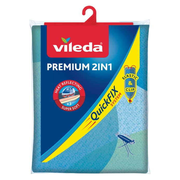 The Vileda Premium 2in1 ironing board cover has a metallised and heat reflecting material to help reduce ironing time and consists of 3 layers which creates a softer surface on your ironing board.