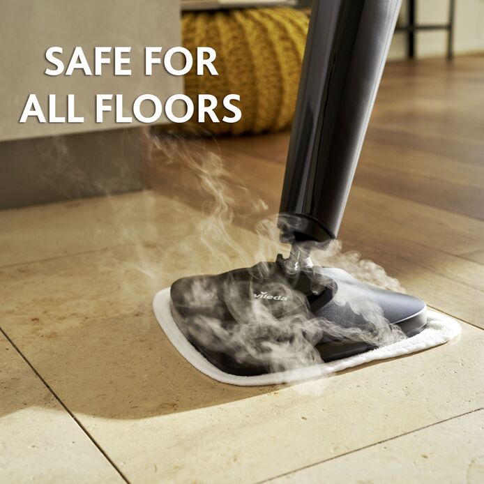 The Vileda Steam Mop Plus gives an effective hygienic clean without the need of using any chemicals. The combination of steam and the microfibre pads kills 99.9%* of bacteria from all types of floor surfaces making this a great chemical free cleaning option for floors.