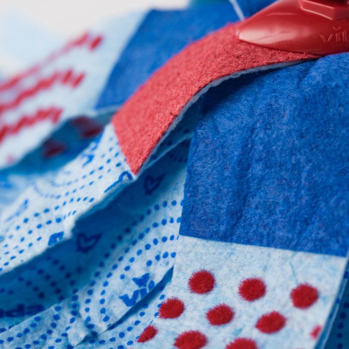 The red non-scratch scourer removes stubborn dirt, the blue microfibre zone removes greasy residue and the 3D red power dots for picks up extra hair and dirt particle.