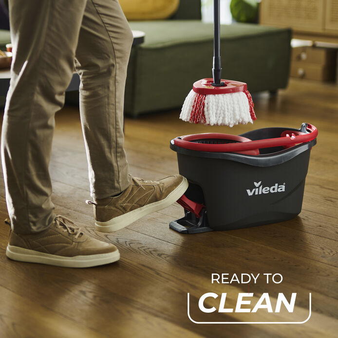 Vileda Turbo Spin Mop & 2in1 Refill Bundle is the ideal cleaning system for all floors! Its rotating wringer makes cleaning easy and quick. The complete set includes a mop and bucket with a foot activated spinning wringer. It is great for mopping all hard floor surfaces including tiles, wood and laminate. No need to manually wring your mop after rinsing – the 360° spin system does the hard work for you!