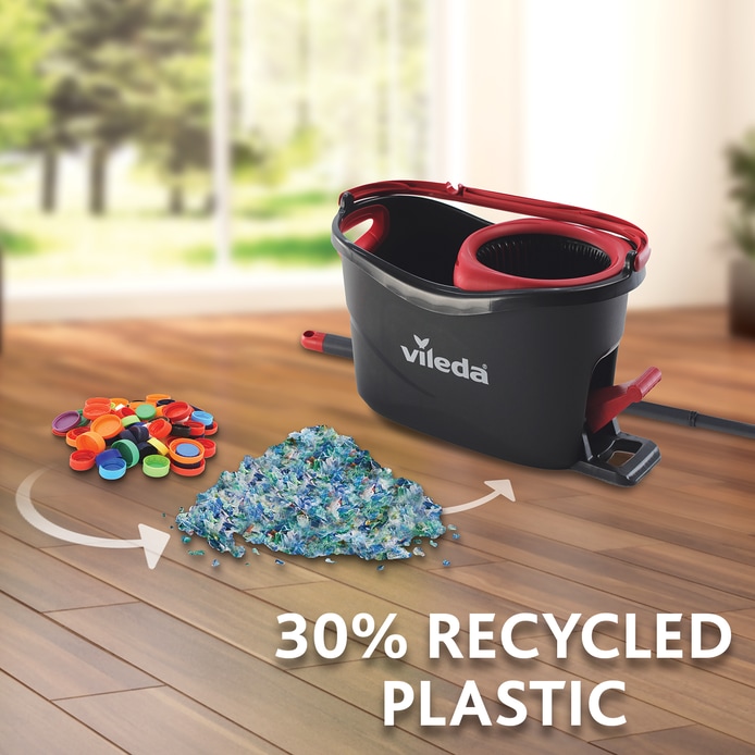 - Complete system consists of bucket, handle and mop; containing more than 30% recycled material