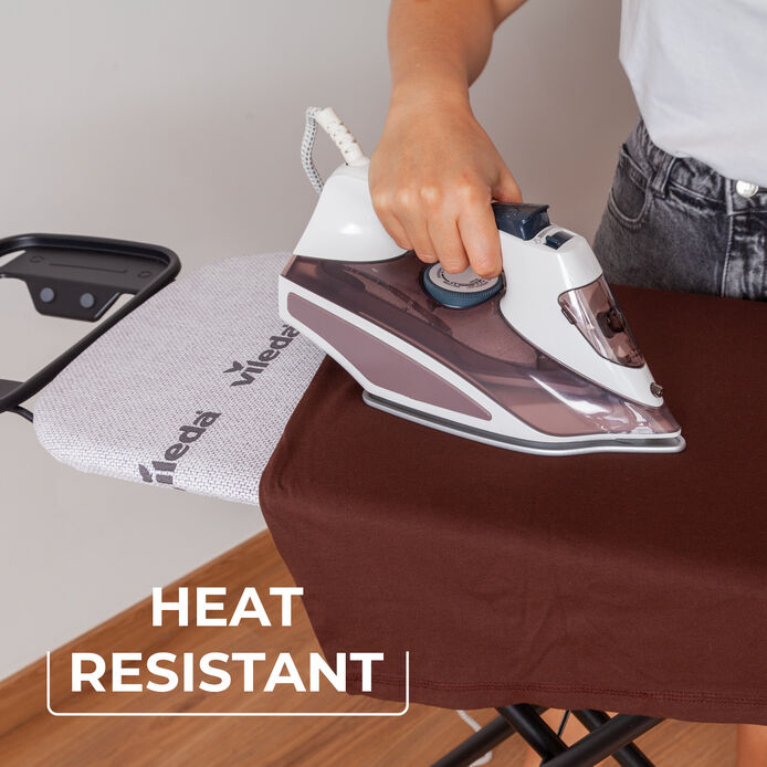 Find your perfect ironing board with the Vileda Diamond S Ironing Board! With its Titanium coating for heat resistance of more than 200°C it prevents yellowing, burn marks, and is extra resistant, ensuring your board looks newer for longer. It is three times more durable than non-treated cotton covers.