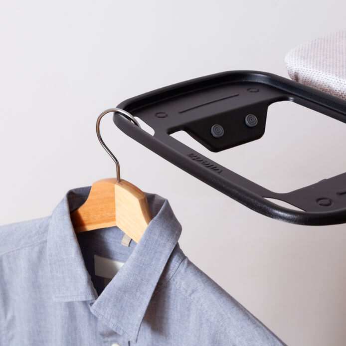 The rest fits standard irons and features 2 holes for clothes hangers. It is compact and light but provides enough stability due to with its robust steel structure.