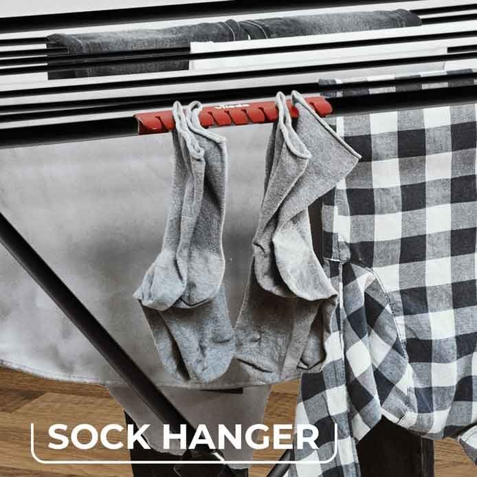 One of the standout features of the Vileda Extra Ultimate Indoor Airer is its convenient sock holder. This integrated holder provides dedicated space for drying smaller items, such as socks, ensuring they remain secure without the need for pegs. This practical addition maximises the available drying space.