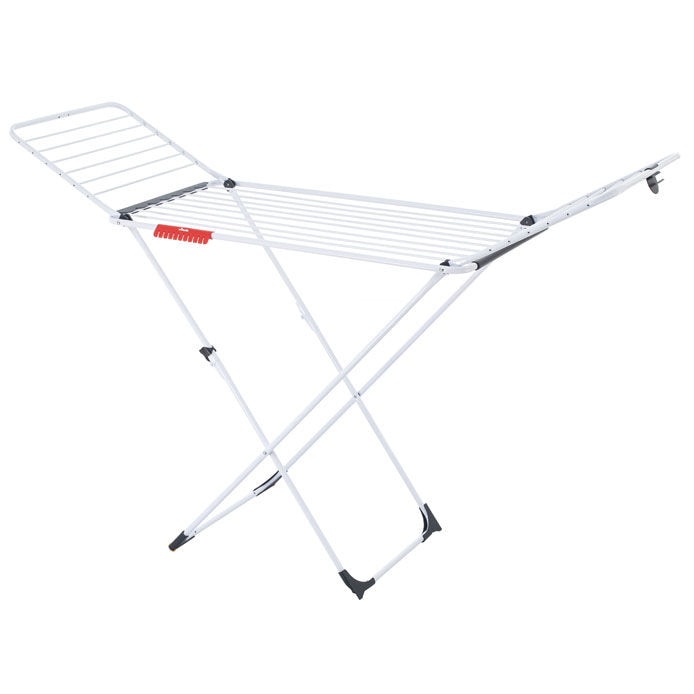 The Vileda Extra is strong and durable and has a clip on the leg to ensure the airer remains stable even when fully loaded. There is also a handy wing clip which keeps the wings in place when the airer is folded and stored away.