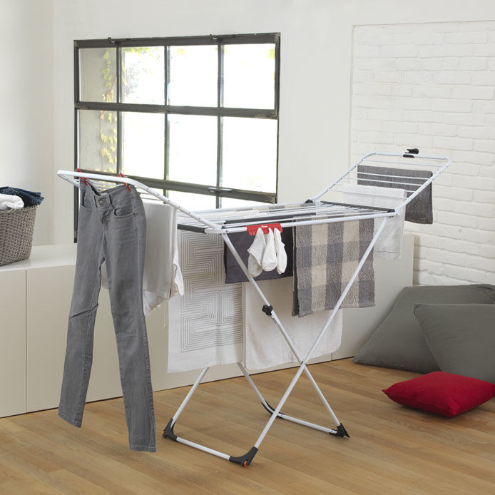 As a robust indoor dryer, it safely stands on solid flooring like tiling without leaving scratches. You can position it in a separate utility room as well as among your furniture in the living room. The thick wires are suitable for clothes and also heavier fabrics like bedding or duvets. Position the airer next to a radiator for an even faster drying process. Vileda’s Extra indoor X-legs dryer is a useful tool for all your different types of laundry. Get your own Extra clothes airer on wheels now and say goodbye to the unwieldy days of laundry drying!