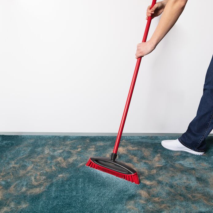 Say goodbye to pet hair! Angled rubber bristles effectively collect and remove hair and dirt from any type of floor surface, including carpets and rugs, and reach into corners and other tight spots.