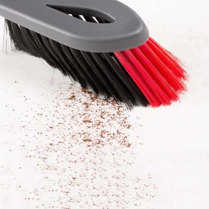 Ultra-thin black fibres collect even the finest dust while hard red fibres reach into stiff or angled corners and handle them with precise sweeping.