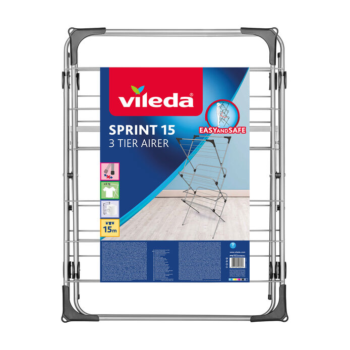 The Vileda Sprint models are our best selling drying rack in the UK. Vileda Sprint 15M is a strong, steel 3 tier airer, plus easy to use opening and closing mechanism.