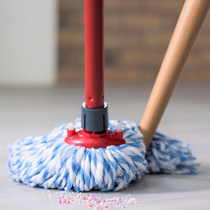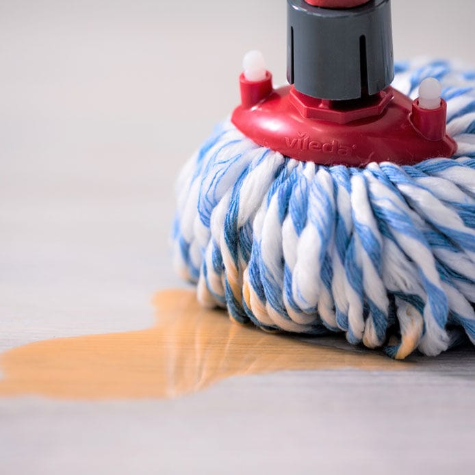 It's good to know that we use recycled natural fibres to make the cotton strands of the Vileda Microfibre & Cotton Mop. The material mix of cotton and microfibre really gives a high performing clean. The cotton gives fantastic absorbency on your floor, making easy work of soaking up water or other spilt liquids, and removes 99% of bacteria with JUST water*.