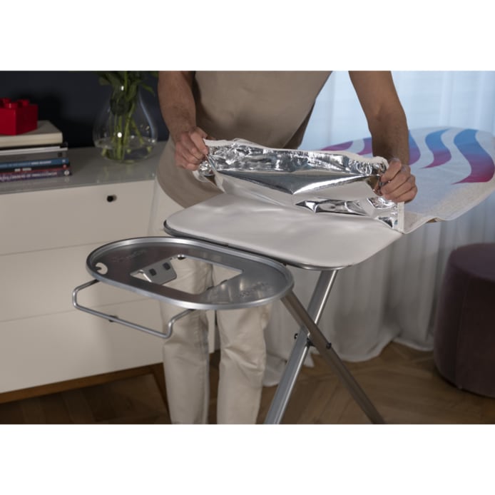 The underside of the cotton cover has a unique foil material that reflects heat and steam through the cotton cover and into your laundry to make ironing quicker and easier.