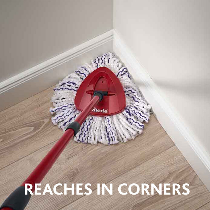 The Vileda Turbo 3in1 spin mop and bucket set is the ideal cleaning system for all floors. The rotating wringer makes cleaning fast and easy saving you valuable time. The complete set includes a spinning mop with a mop head and a foot activated rotating mop bucket. It is great for mopping all hard floor surfaces including wood and laminate. No need to manually rotate and wring your mop after rinsing — the 360° spin system does the hard work for you.