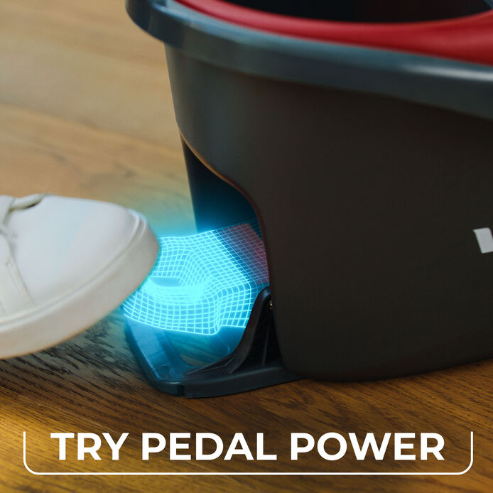 A spinning pedal-activated wringer that makes mopping easy. Simply pump the pedal to spin and wring!